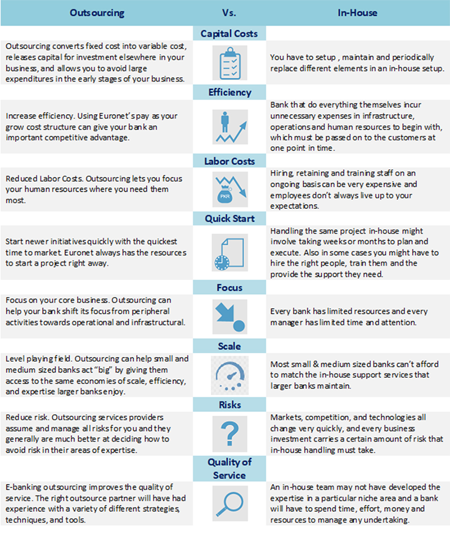 Euronet Pakistan comprises of experienced individuals from the local industry and is backed by the expertise of its affiliates across the globe and its development centres and EFT processing centres in the USA, Greece, Budapest, China, Serbia and India.